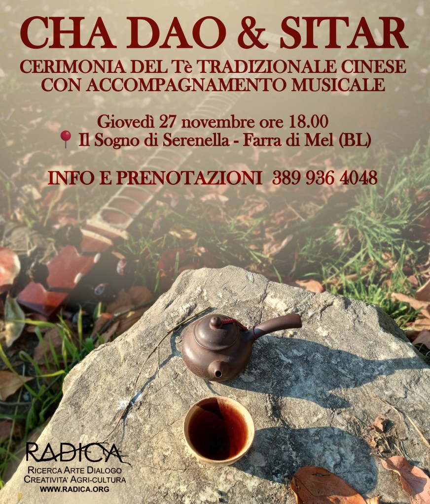 La cerimonia del tè Cha Dao (la via del tè), accompagnata dalle note del sitar di Matteo Scarpa, intende creare uno spazio di connessione intima e coinvolgimento sensoriale con se stessi e con l’ambiente circostante. È un momento di silenzio, assorbimento e presenza, che può servire come introduzione e sostegno a pratiche di meditazione e mindfulness, allenandoci a un ascolto più profondo di noi stessi, delle nostre emozioni e delle nostre relazioni. Un’occasione per bilanciare l’importanza che la società moderna dà all’aspetto visivo e materiale.