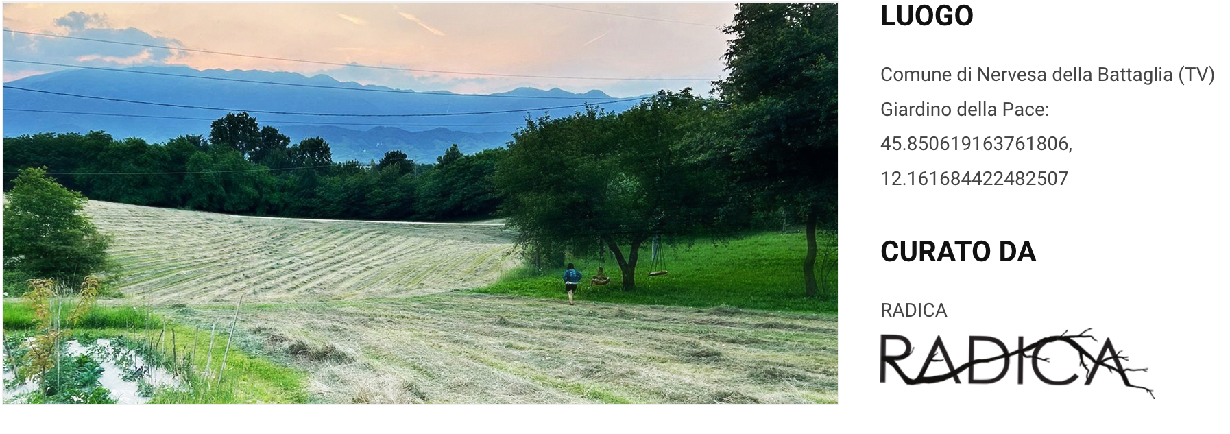 Nasce il “Giardino della Pace – Possibility Field“, uno spazio nato con l’obiettivo di coniugare la natura e la storia attraverso l’ascolto, parte dell’iniziativa “Luoghi del Bensentire“, che mira a valorizzare spazi di particolare interesse acustico. Questi luoghi sono curati con l’obiettivo di preservarne e studiarne le caratteristiche sonore, offrendo anche opportunità per eventi e manifestazioni legati all’udito.